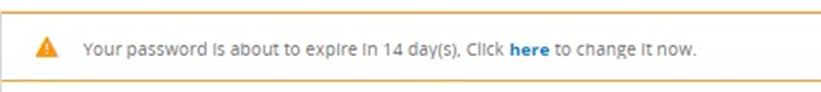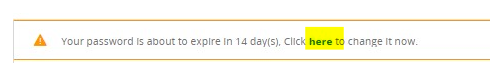 When it is time to update your CyberArk password for iConnect access, a notification like the example shown below will display on your user portal once logged into CyberArk.