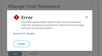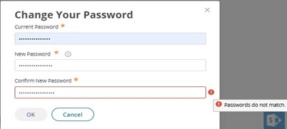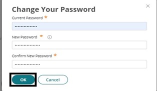 - Re-enter your new password, ensuring that you have included all the elements required, and click OK.