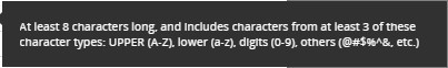 - Re-enter your new password, ensuring that you have included all the elements required, and click OK.