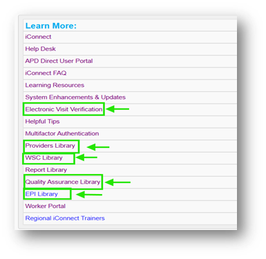 Manuals and job aids have been created to assist providers with workflows and procedures in iConnect. At times they are updated to illustrate enhancements made to iConnect. Services have specific manuals or job aids that are located and updated on the APD’s website.