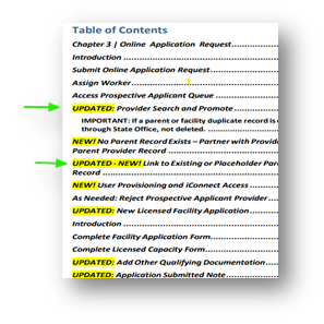 - Additionally, In the manuals there are Table of Contents, you may see the following to assist the user in locating where the updates were made